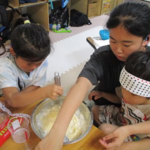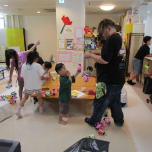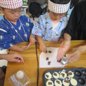 午後は屋台開店。店員さんになる子、お客さんになる子、交代で楽しみました。