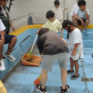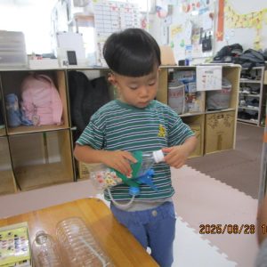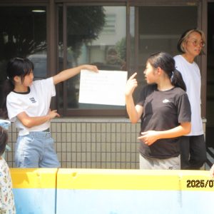 水遊びをする日の午前中は、水遊びのルール、水遊びの内容、また、天候の悪い日は、体育室で何をして遊ぶのか、「子ども会議」を