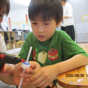子どもたちは、スタッフからのヒントを元に考え始めました。